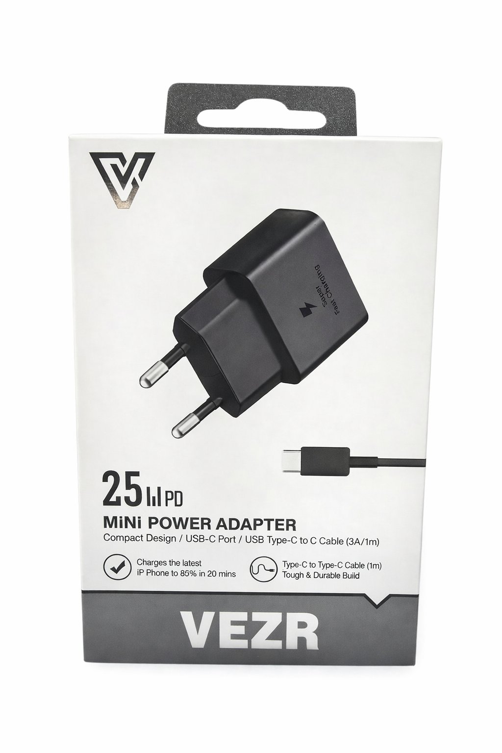 El VEZR Mini Power Adapter de 25W es un cargador compacto y de alto rendimiento, diseñado para ofrecer una carga rápida, segura y eficiente en dispositivos modernos. Incorpora tecnología Power Delivery (PD), lo que permite optimizar la velocidad de carga, alcanzando hasta un 80% en aproximadamente 20 minutos en dispositivos compatibles.