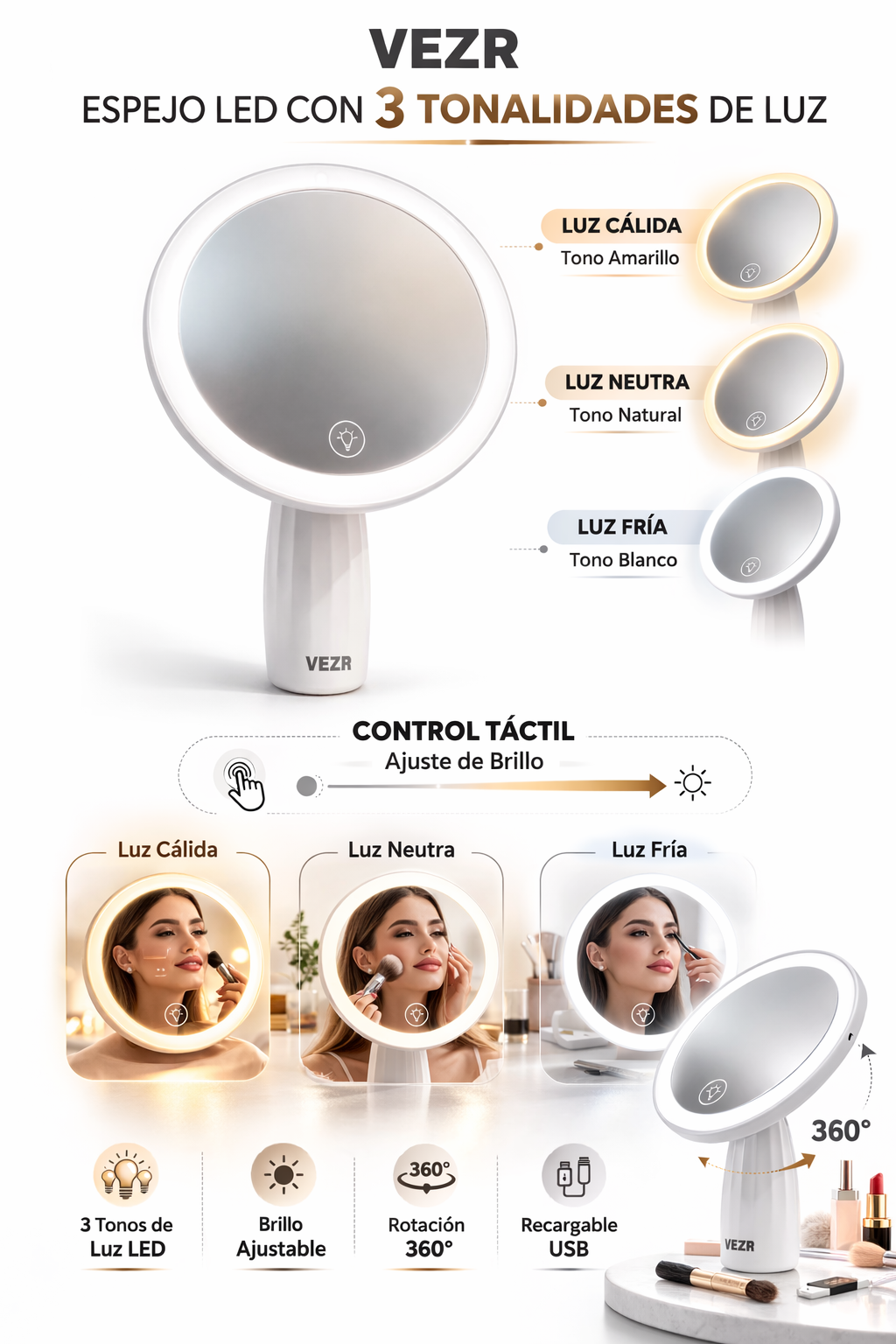 • Ideal para maquillaje y cuidado facial.