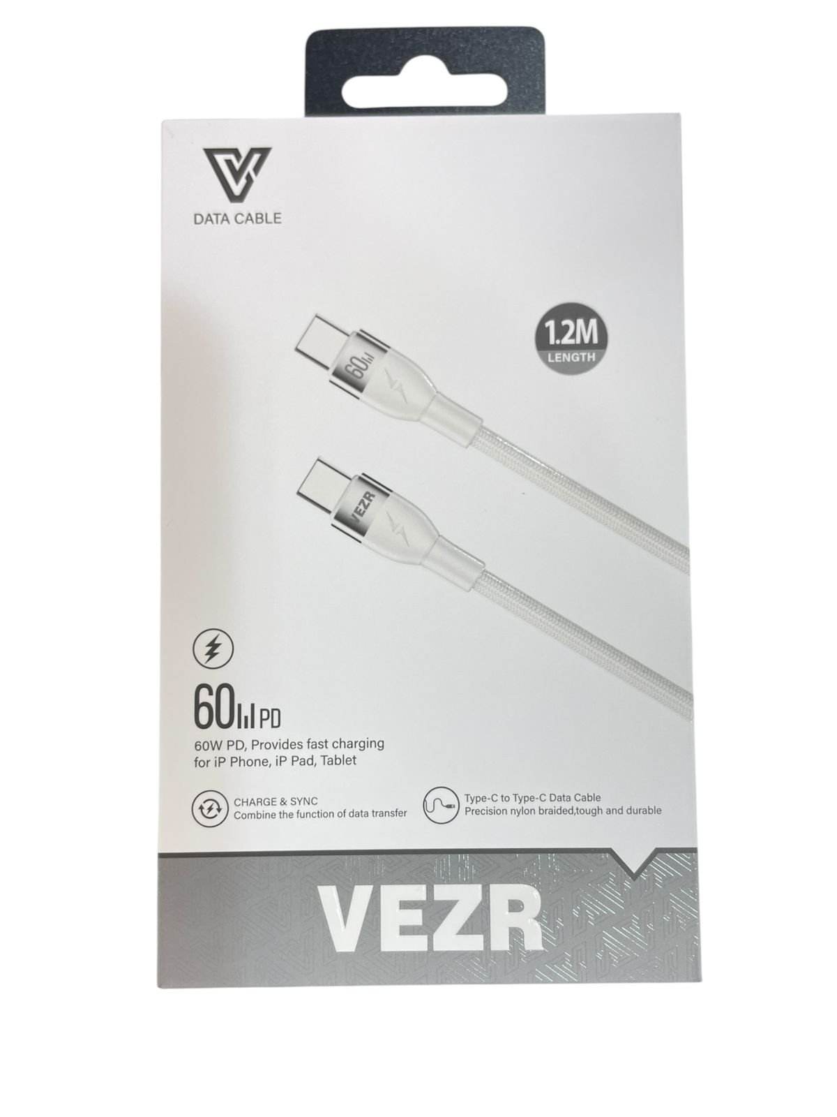 Cable VEZR VD02 Tipo-C a Tipo-C 60W – 1.2M | Blanco